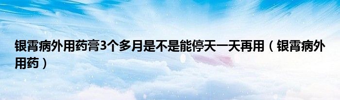 关于银霄病外用药膏3个多月是不是能停天一天再用,银霄病外用药这个很多人还不知道,今天菲菲来为大家解答以上的问题,现在让我们一起来看看吧!