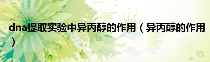 关于dna提取实验中异丙醇的作用,异丙醇的作用这个很多人还不知道,今天菲菲来为大家解答以上的问题,现在让我们一起来看看吧!
