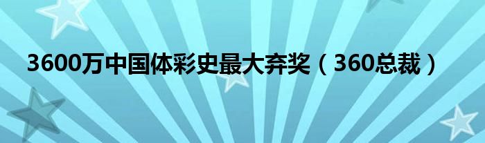 大家好,小飞来为大家解答以上问题,3600万中国体彩史最大弃奖,360总裁很多人还不知道,现在让我们一起来看看吧!