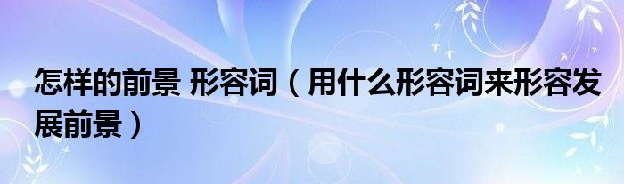 关于怎样的前景 形容词,用什么形容词来形容发展前景这个很多人还不知道,今天菲菲来为大家解答以上的问题,现在让我们一起来看看吧!