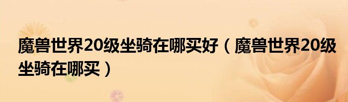 关于魔兽世界20级坐骑在哪买好,魔兽世界20级坐骑在哪买这个很多人还不知道,今天菲菲来为大家解答以上的问题,现在让我们一起来看看吧!