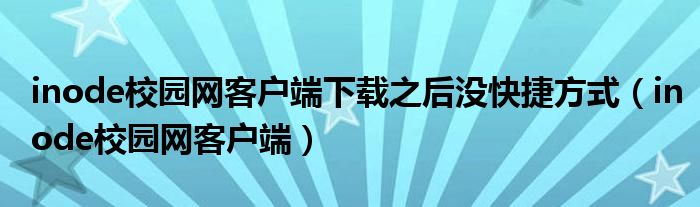关于inode校园网客户端下载之后没快捷方式,inode校园网客户端这个很多人还不知道,今天菲菲来为大家解答以上的问题,现在让我们一起来看看吧!