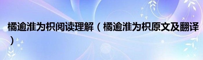 关于橘逾淮为枳阅读理解,橘逾淮为枳原文及翻译这个很多人还不知道,今天菲菲来为大家解答以上的问题,现在让我们一起来看看吧!