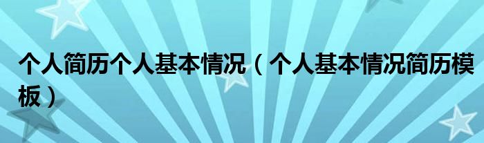 关于个人简历个人基本情况,个人基本情况简历模板这个很多人还不知道,今天菲菲来为大家解答以上的问题,现在让我们一起来看看吧!
