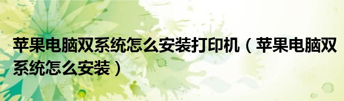 关于苹果电脑双系统怎么安装打印机,苹果电脑双系统怎么安装这个很多人还不知道,今天菲菲来为大家解答以上的问题,现在让我们一起来看看吧!