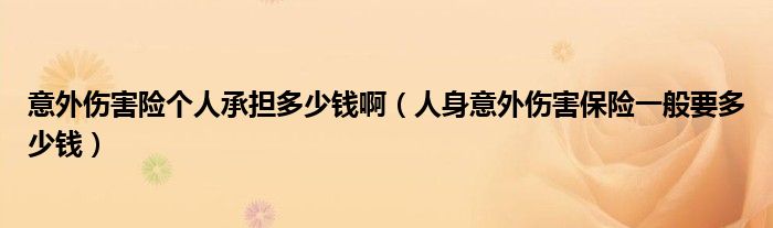 关于意外伤害险个人承担多少钱啊,人身意外伤害保险一般要多少钱这个很多人还不知道,今天菲菲来为大家解答以上的问题,现在让我们一起来看看吧!