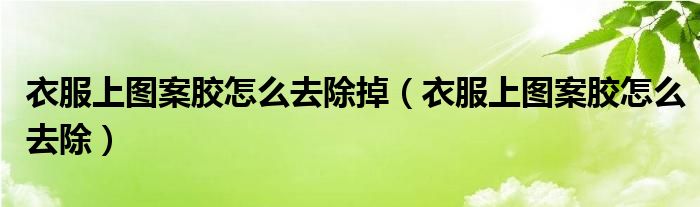 大家好,小晋来为大家解答以下问题,关于衣服上图案胶怎么去除掉,衣服上图案胶怎么去除很多人还不知道,今天让我们一起来看看吧!