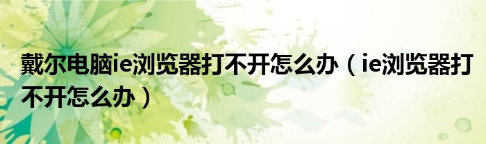 关于戴尔电脑ie浏览器打不开怎么办,ie浏览器打不开怎么办这个很多人还不知道,今天菲菲来为大家解答以上的问题,现在让我们一起来看看吧!