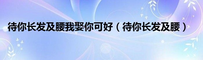 待你长发及腰我娶你可好,待你长发及腰这个很多人还不知道,小飞来为大家解答以上的问题。现在让我们一起来看看吧!