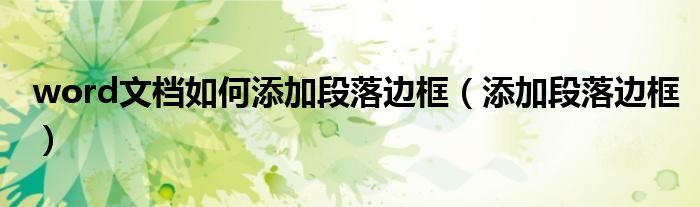 大家好,小晋来为大家解答以下问题,关于word文档如何添加段落边框,添加段落边框很多人还不知道,今天让我们一起来看看吧!