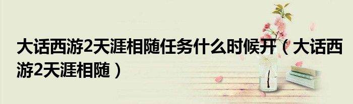 关于大话西游2天涯相随任务什么时候开,大话西游2天涯相随这个很多人还不知道,今天菲菲来为大家解答以上的问题,现在让我们一起来看看吧!
