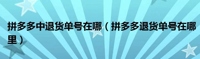 大家好,小晋来为大家解答以下问题,关于拼多多中退货单号在哪,拼多多退货单号在哪里很多人还不知道,今天让我们一起来看看吧!