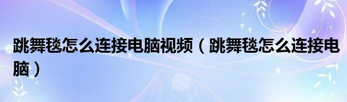 跳舞毯怎么连接电脑视频(跳舞毯怎么连接电脑)