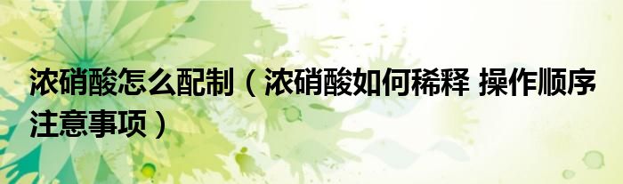 关于浓硝酸怎么配制,浓硝酸如何稀释 操作顺序 注意事项这个很多人还不知道,今天菲菲来为大家解答以上的问题,现在让我们一起来看看吧!