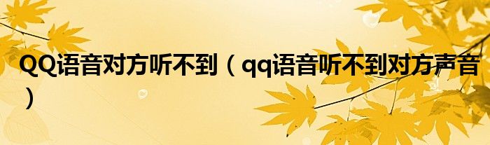 关于QQ语音对方听不到,qq语音听不到对方声音这个很多人还不知道,今天菲菲来为大家解答以上的问题,现在让我们一起来看看吧!