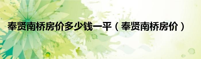 关于奉贤南桥房价多少钱一平,奉贤南桥房价这个很多人还不知道,今天菲菲来为大家解答以上的问题,现在让我们一起来看看吧!