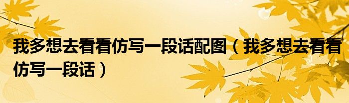 我多想去看看仿写一段话配图,我多想去看看仿写一段话这个很多人还不知道,小飞来为大家解答以上的问题。现在让我们一起来看看吧!