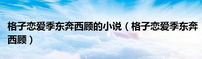 关于格子恋爱季东奔西顾的小说,格子恋爱季东奔西顾这个很多人还不知道,今天菲菲来为大家解答以上的问题,现在让我们一起来看看吧!