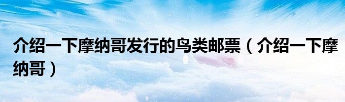 关于介绍一下摩纳哥发行的鸟类邮票,介绍一下摩纳哥这个很多人还不知道,今天菲菲来为大家解答以上的问题,现在让我们一起来看看吧!