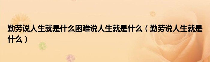 关于勤劳说人生就是什么困难说人生就是什么,勤劳说人生就是什么这个很多人还不知道,今天菲菲来为大家解答以上的问题,现在让我们一起来看看吧!