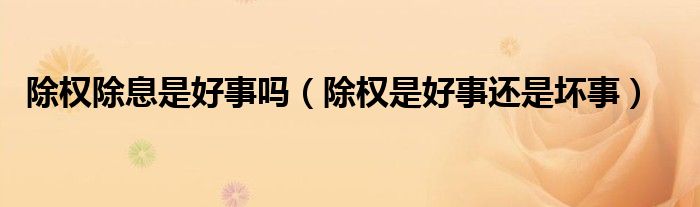 除权除息是好事吗(除权是好事还是坏事)