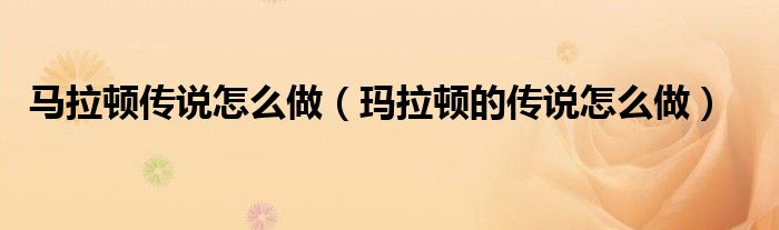 马拉顿传说怎么做(玛拉顿的传说怎么做)