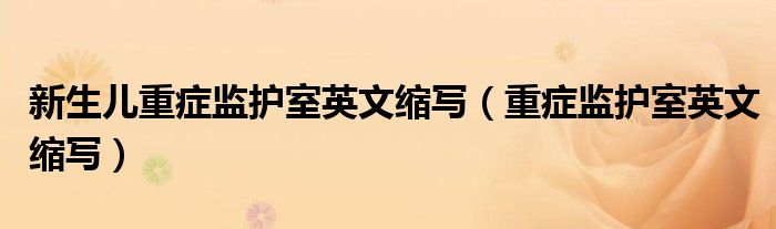 大家好,小晋来为大家解答以下问题,关于新生儿重症监护室英文缩写,重症监护室英文缩写很多人还不知道,今天让我们一起来看看吧!