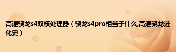 大家好,小常来为大家解答以上问题。高通骁龙s4双核处理器,骁龙s4pro相当于什么,高通骁龙进化史很多人还不知道,现在让我们一起来看看吧!