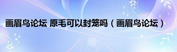 大家好,小晋来为大家解答以下问题,关于画眉鸟论坛 原毛可以封笼吗,画眉鸟论坛很多人还不知道,今天让我们一起来看看吧!
