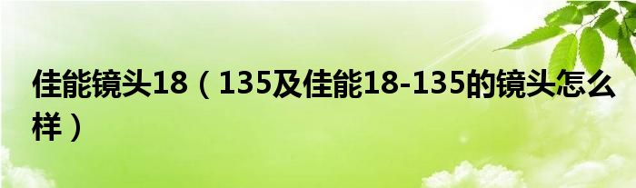 大家好,小常来为大家解答以上问题。佳能镜头18,135及佳能18-135的镜头怎么样很多人还不知道,现在让我们一起来看看吧!