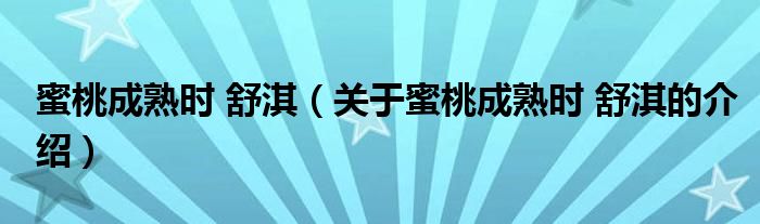 大家好,今天小乐来为大家解答以上的问题。蜜桃成熟时 舒淇,关于蜜桃成熟时 舒淇的介绍很多人还不知道,现在让我们一起来看看吧!