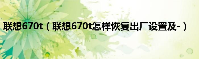 大家好,小常来为大家解答以上问题。联想670t,联想670t怎样恢复出厂设置及-很多人还不知道,现在让我们一起来看看吧!
