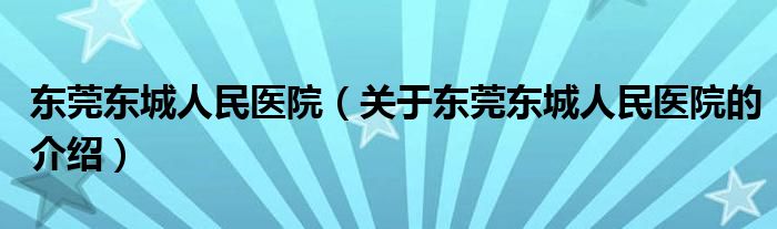 东莞东城人民医院(关于东莞东城人民医院的介绍)