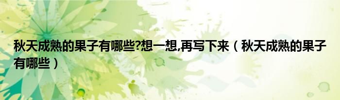 大家好,小晋来为大家解答以下问题,关于秋天成熟的果子有哪些?想一想,再写下来,秋天成熟的果子有哪些很多人还不知道,今天让我们一起来看看吧!