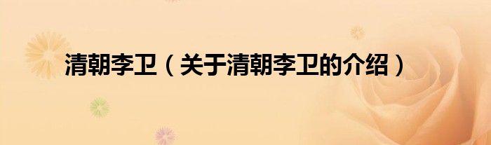 大家好,今天小乐来为大家解答以上的问题。清朝李卫,关于清朝李卫的介绍很多人还不知道,现在让我们一起来看看吧!