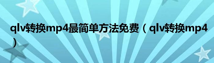 qlv转换mp4最简单方法免费(qlv转换mp4)