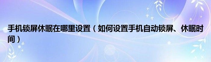 大家好,今天小悦来为大家解答以上问题。手机锁屏休眠在哪里设置,如何设置手机自动锁屏、休眠时间很多人还不知道,现在让我们一起来看看吧!