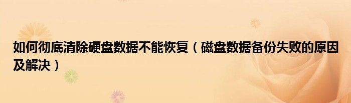 大家好,今天小悦来为大家解答以上问题。如何彻底清除硬盘数据不能恢复,磁盘数据备份失败的原因及解决很多人还不知道,现在让我们一起来看看吧!