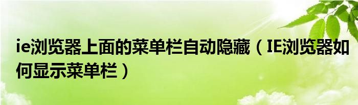 大家好,今天小悦来为大家解答以上问题。ie浏览器上面的菜单栏自动隐藏,IE浏览器如何显示菜单栏很多人还不知道,现在让我们一起来看看吧!