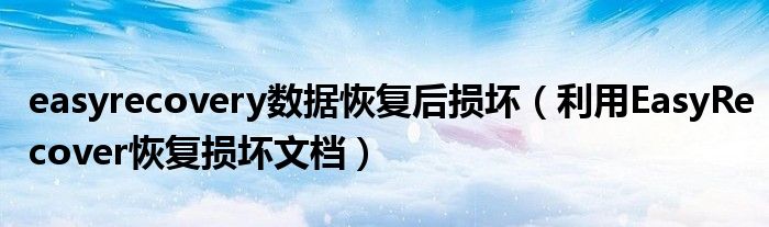 大家好,今天小悦来为大家解答以上问题。easyrecovery数据恢复后损坏,利用EasyRecover恢复损坏文档很多人还不知道,现在让我们一起来看看吧!