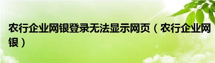 关于农行企业网银登录无法显示网页,农行企业网银这个很多人还不知道,今天菲菲来为大家解答以上的问题,现在让我们一起来看看吧!