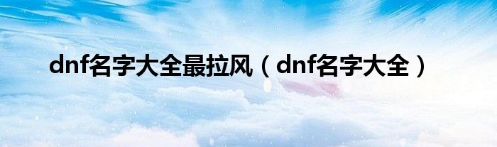 关于dnf名字大全最拉风,dnf名字大全这个很多人还不知道,今天菲菲来为大家解答以上的问题,现在让我们一起来看看吧!