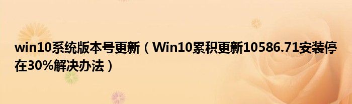 大家好,今天小悦来为大家解答以上问题。win10系统版本号更新,Win10累积更新10586.71安装停在30%解决办法很多人还不知道,现在让我们一起来看看吧!