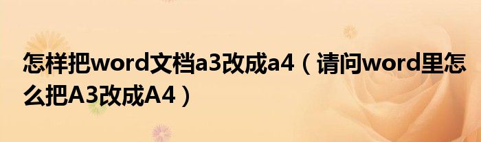 怎样把word文档a3改成a4(请问word里怎么把A3改成A4)