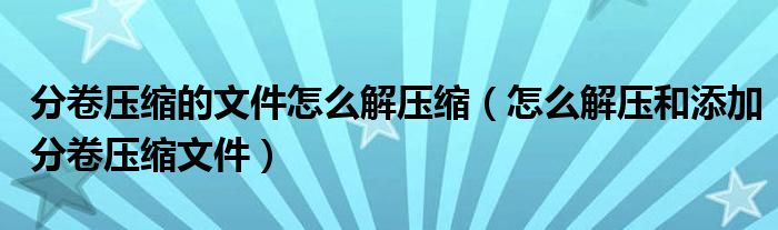 大家好,今天小悦来为大家解答以上问题。分卷压缩的文件怎么解压缩,怎么解压和添加分卷压缩文件很多人还不知道,现在让我们一起来看看吧!