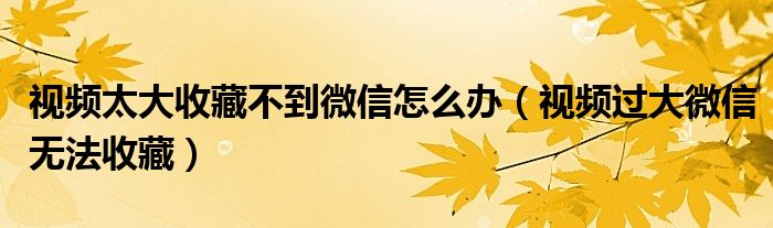 视频太大收藏不到微信怎么办(视频过大微信无法收藏)