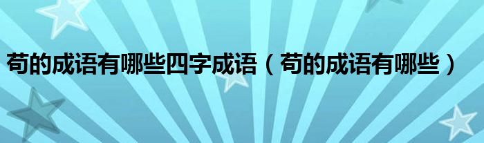 大家好,小晋来为大家解答以下问题,关于苟的成语有哪些四字成语,苟的成语有哪些很多人还不知道,今天让我们一起来看看吧!