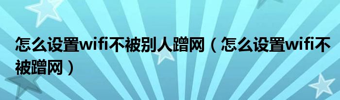 怎么设置wifi不被别人蹭网(怎么设置wifi不被蹭网)