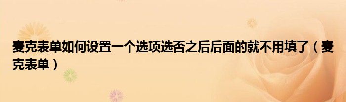 麦克表单如何设置一个选项选否之后后面的就不用填了(麦克表单)