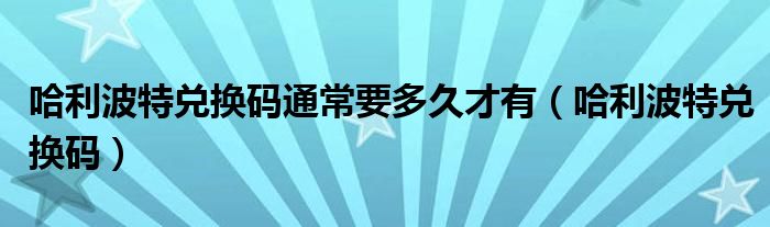 大家好,雨雨来为大家解答以上问题,哈利波特兑换码通常要多久才有,哈利波特兑换码很多人还不知道,现在让我们一起来看看吧!